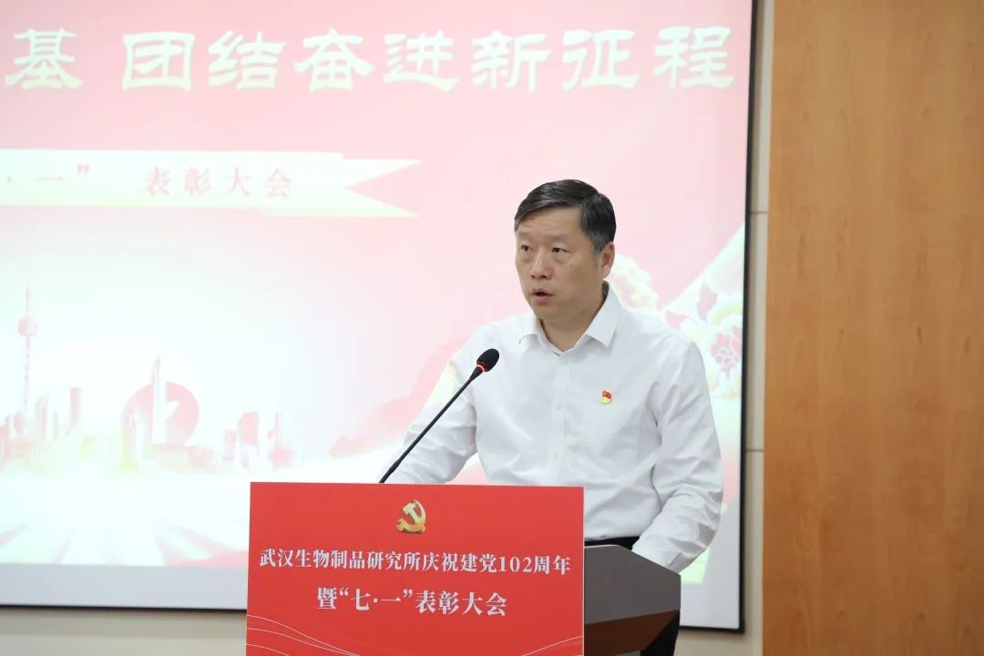 6月28日,中國(guó)生物武漢生物制品研究所召開(kāi)慶祝中國(guó)共產(chǎn)黨成立102周年暨“七一”表彰大會(huì),熱烈慶祝中國(guó)共產(chǎn)黨成立102周年,表彰公司各條戰(zhàn)線涌現(xiàn)出的先進(jìn)典型,進(jìn)一步激勵(lì)全體員工堅(jiān)定信心、敢為善為,形成和衷共濟(jì)、齊心協(xié)力推動(dòng)公司發(fā)展的強(qiáng)大合力。會(huì)議由黨委副書(shū)記、總經(jīng)理段凱主持,公司黨政領(lǐng)導(dǎo)班子成員、中層管理人員、黨支部書(shū)記、黨員代表、分工會(huì)主席、團(tuán)委委員、民主黨派人士代表、毓晉公司代表等110余人參會(huì)。